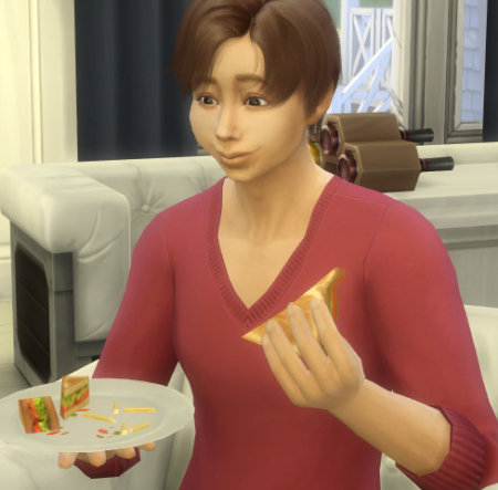 T「うん、美味しいねー。あ、ほらミツほっぺにソース付いてるよw」